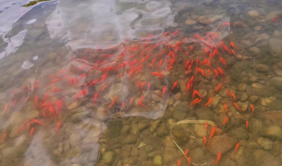 在楠溪江岸邊,一起投放生態(tài)魚苗