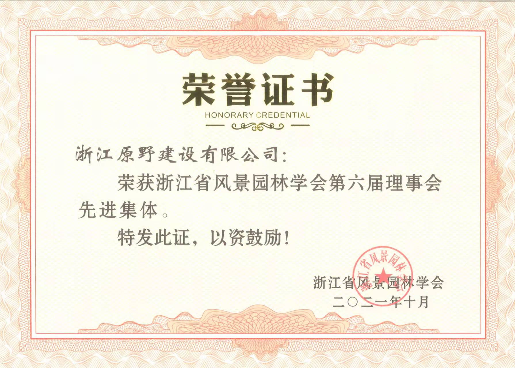 - 2021年10月,榮獲浙江省風(fēng)景園林學(xué)會第六屆理事會"先進集體"榮譽稱號