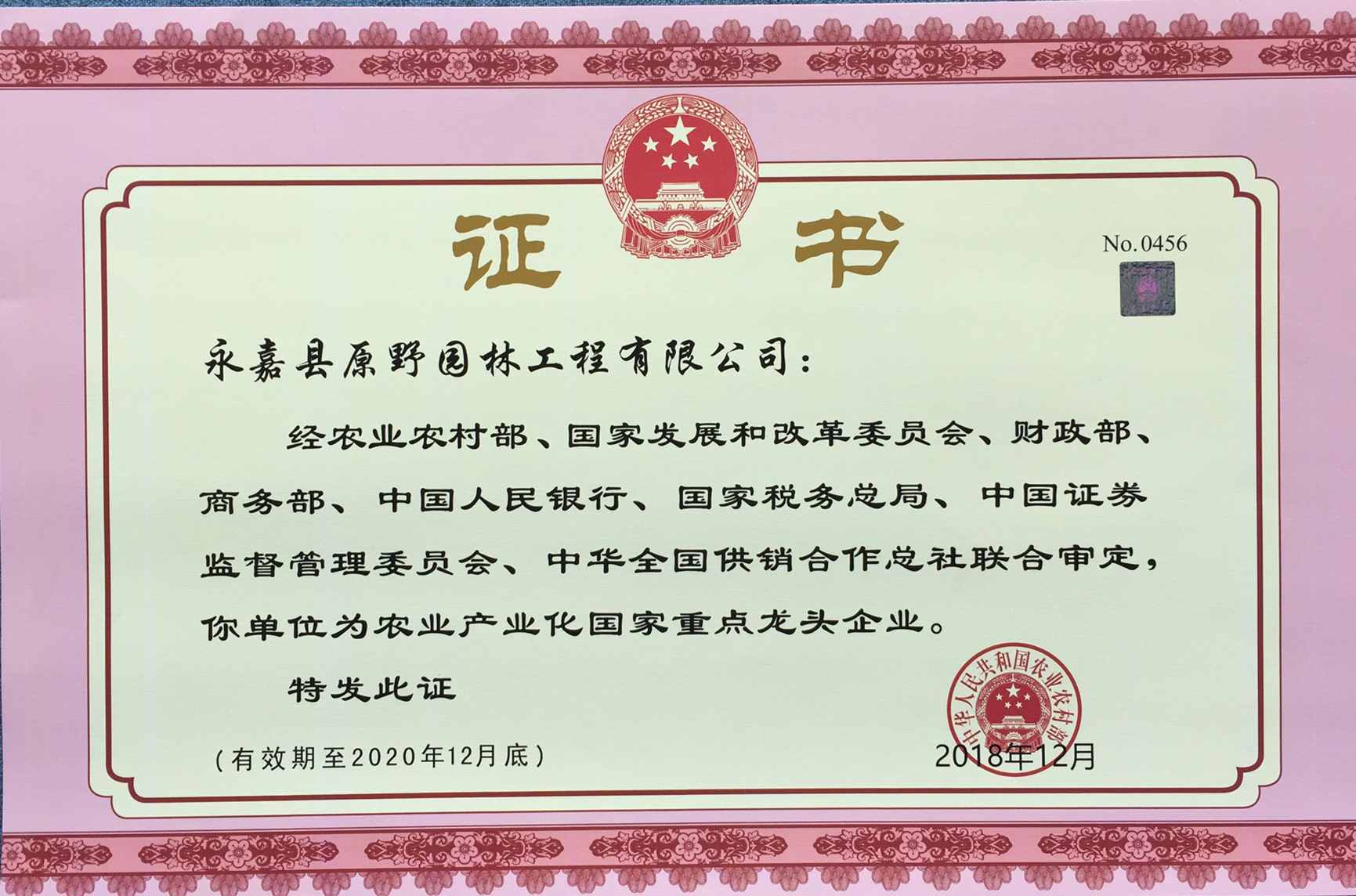 - 2020年12月,榮獲原野園林植物省級重點農(nóng)業(yè)企業(yè)研究院
