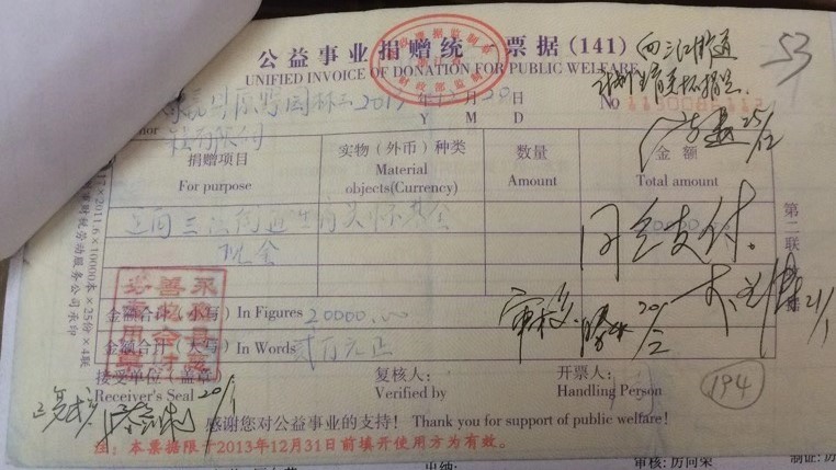 2013年向永嘉縣紅十字會(三江街道生育關(guān)懷基金)2萬