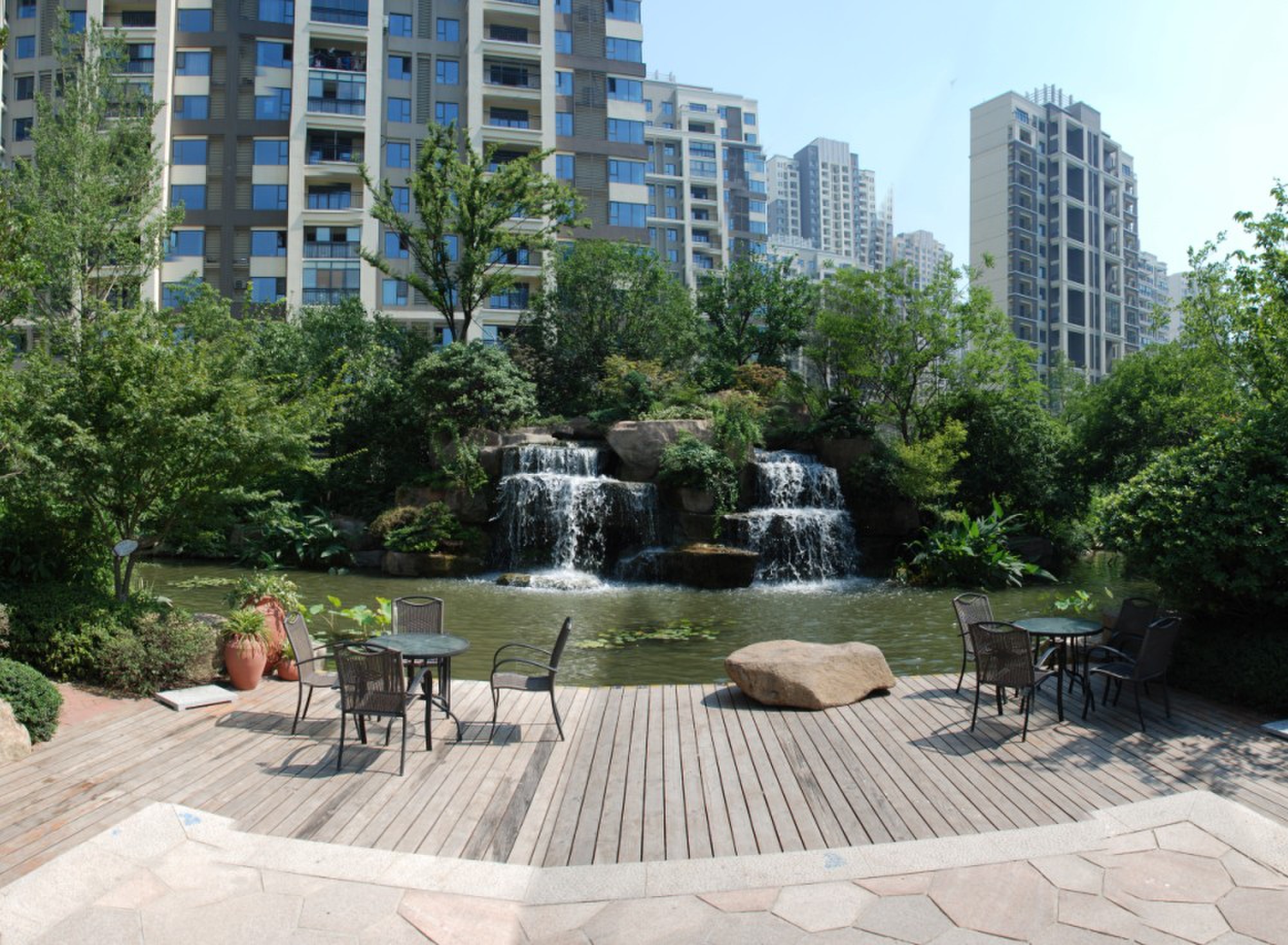 本工程施工總面積約35000㎡,其中綠化面積29772㎡,自然水系約370㎡,景石點綴2000噸。工程還包括休閑座椅、花缽、小橋、弧形廊架、木平臺、八角亭、四角亭、水瀑等景觀。2012年5月29日,工程順利通過驗收。