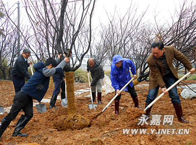 隨后,雙方互贈了紀(jì)念品,同時借植樹節(jié)之機(jī),在永嘉原野園林創(chuàng)意觀光園內(nèi)開展“植樹節(jié)”交流會,一起種下了40多棵臺灣樹種——臺灣櫻花。