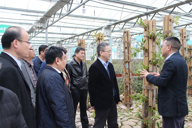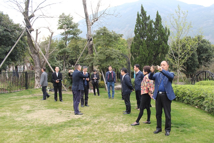 李星濤董事長為考察團詳細介紹了農(nóng)莊的發(fā)展以及涉及領(lǐng)域,原野目前擁有7個苗圃基地,共2000苗種植面積,并設(shè)有科研部門,積極響應(yīng)省政府“十三五”期間提出的“新植1億株珍貴樹,為子孫后代留財富”的口號,研發(fā)南方紅豆杉、雁蕩潤楠、江南油杉、黃花梨等珍稀、瀕危樹種,種植了100來萬株珍貴樹木。省水利廳廳長陳龍,對于原野重視自然環(huán)境保護,積極配合”五水共治“的研發(fā)治理工作,表示了高度肯定。原野種植研究紅楠,利用紅楠樹可吸收重金屬的特性,消滅劣Ⅴ類水,改善被電鍍、化工污染的土地,將淤泥變?yōu)榱继铩4送?,原野還與浙江省林學院開展合作,建有800多畝的基地,研究鐵皮石斛豐產(chǎn)栽培技術(shù),目前大棚中種植了26種鐵皮石斛,方便日常觀察生長情況。