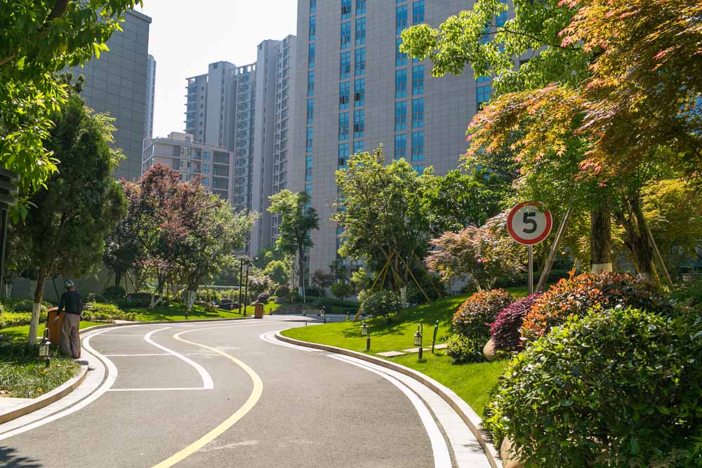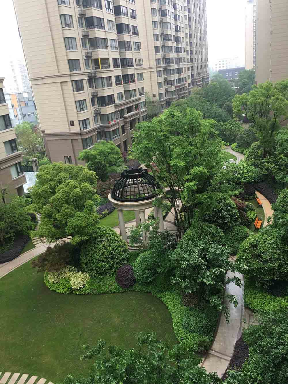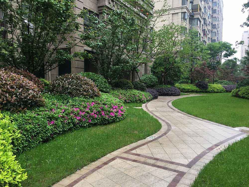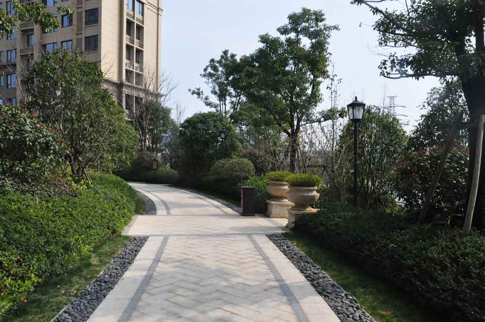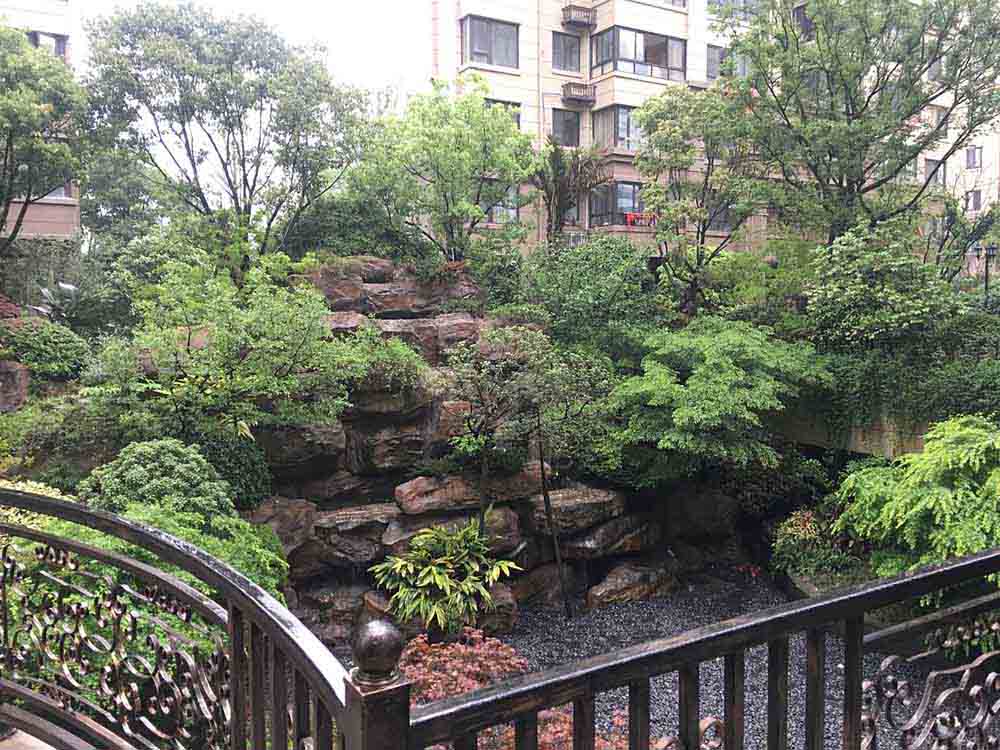 原野建設(shè)打造的龍灣C-14地塊景觀綠化工程,位于永寧西路北側(cè)、緊靠著越秀中學(xué),綠化面積6076.35平方米小區(qū)建筑屬超高層,人走進去會給人很重的壓抑感,建筑外立面米黃色,屬淡色調(diào),再加上綠化設(shè)計要求品種多樣,季相變化豐富,特別是商業(yè)街花壇以及塑石假山瀑布區(qū)的植物,花壇里種植的苗木要求高度、干徑、分叉、冠幅全部一致,通過修剪來達到統(tǒng)一;再者塑石假山瀑布區(qū)的植物,好山好水必定要有好的造型植物來配,所以專門購買了進口紅楓、雞爪槭、樸樹等,再配上本地的中、低層喬木及季節(jié)性灌木及地被植物,使整個小區(qū)一步一景,步移景異,植物季相色彩變化豐富,給人以生活在原生態(tài)大自然中的感覺。