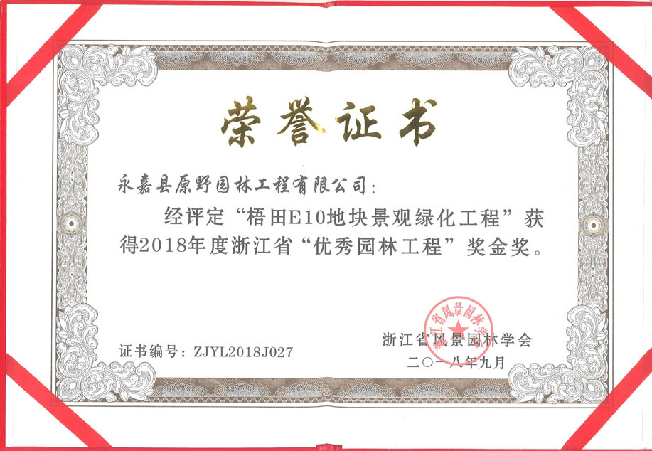2018-12-3012月21日,浙江省第八屆“園林人居”論壇暨2018年“優(yōu)秀園林工程”獎頒獎大會在杭州舉行。原野建設(shè)承建的“龍灣城市中心區(qū)c-14地塊工程”(以下簡稱C14)、“梧田E10地塊景觀綠化工程”(以下簡稱E10)、“永嘉縣行政中心建設(shè)工程景觀綠化工程”(以下簡稱行政中心建設(shè))三個項目分別獲得2018年度浙江省“優(yōu)秀園林工程獎”金獎。
