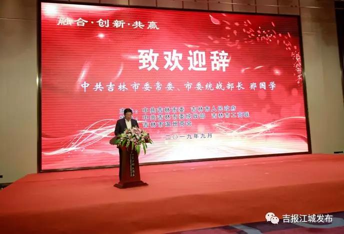 △吉林市委常委、統(tǒng)戰(zhàn)部部長(zhǎng)鄭國(guó)學(xué)致歡迎詞