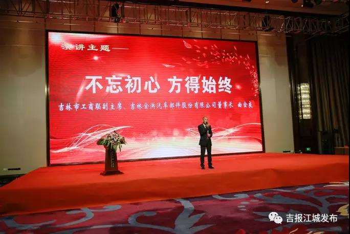 △吉林市工商聯(lián)副主席、吉林金洪汽車部件股份有限公司董事長(zhǎng)曲金良做主題演講