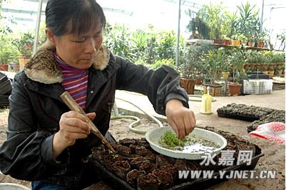 永嘉縣原野園林工程有限公司一直致力于本土樹種的開發(fā),我市提出綠化主推本土樹種后,該公司把無柄小葉榕做為突破口,運用先進(jìn)的環(huán)境調(diào)控技術(shù),采用種子容器育苗,解決無柄小葉榕大批量繁育種苗問題,目前已經(jīng)成功地培育出10萬余棵無柄小葉榕。圖為工作人員正在進(jìn)行容器育苗。記者汪學(xué)斌