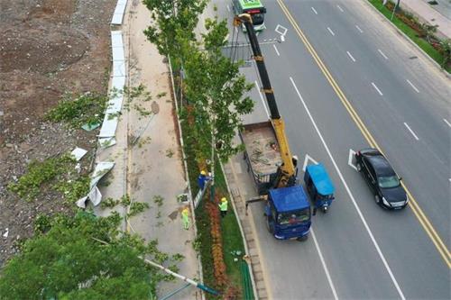 8月5日6時,僅睡了4小時的李召已出現(xiàn)在市區(qū)晨曦路,現(xiàn)場安排吊車、園林工人,對這條路上的行道樹進行重新栽種,由于前一天雙腿泡積水里太久,皮膚開始過敏,癢得難受,可一干起活來,他啥都顧不上了。