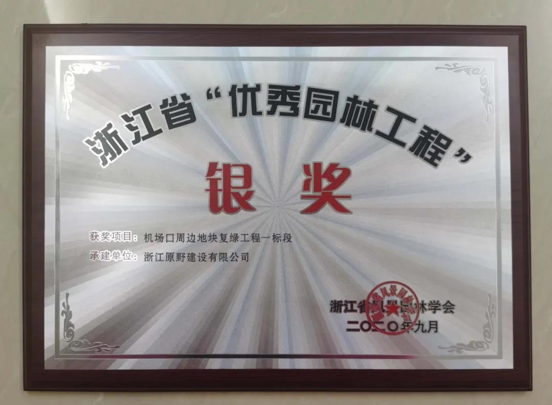 機場口周邊地塊復(fù)綠工程一標(biāo)段獲2020年度浙江省“優(yōu)秀園林工程”銀獎