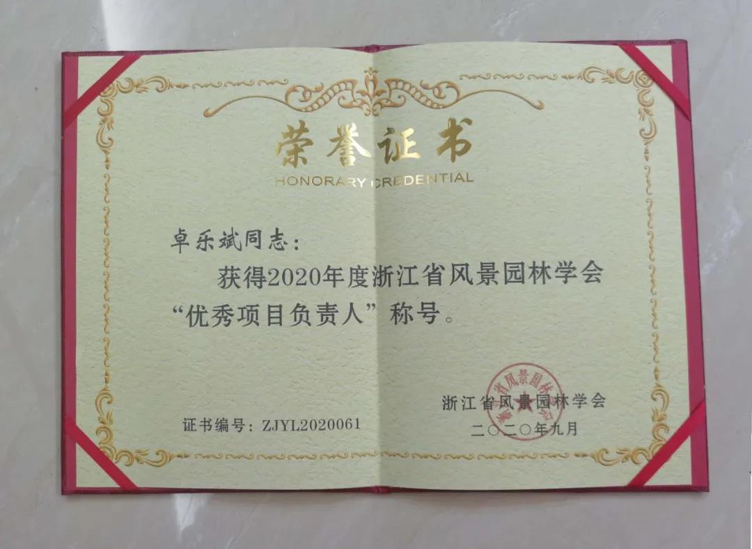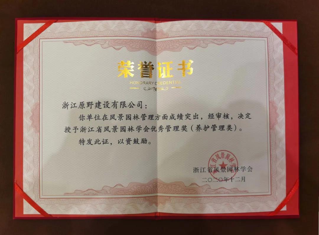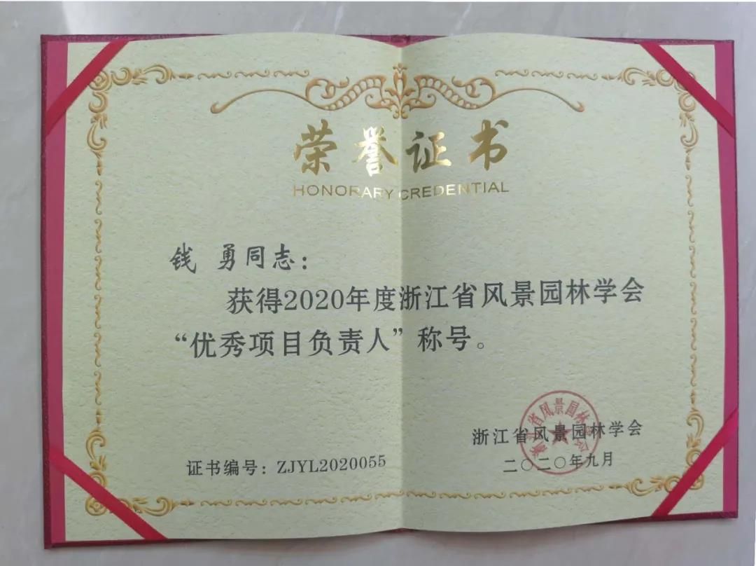 獲浙江省風(fēng)景園林學(xué)會優(yōu)秀管理獎(養(yǎng)護(hù)管理類)