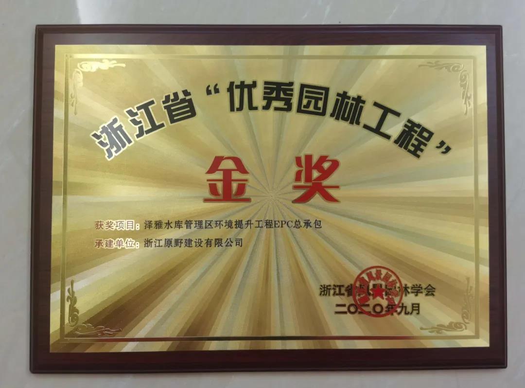 澤雅水庫管理區(qū)環(huán)境提升工程(EPC)總承包獲2020年度浙江省“優(yōu)秀園林工程”金獎