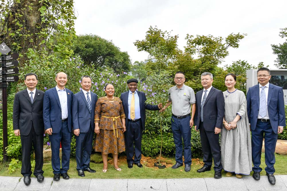 塔巴內(nèi)首相和參訪陪同人員在“友誼樹”旁合影留念