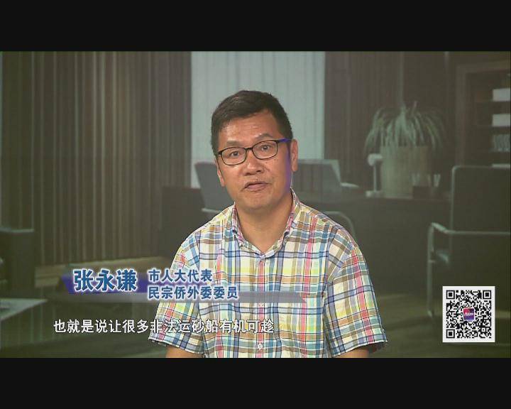 市人大代表、民宗僑外委委員張永謙:我認為出現(xiàn)這樣的情況主要有兩個方面的因素,一個是極大的利益驅動,非法采砂這個行業(yè)因為建筑砂石市場需求量非常大,運砂船有極大的利益,利益驅動是一個很重要的因素;第二個因素是我們現(xiàn)在監(jiān)管也存在一些漏洞,也就是說讓很多非法運砂船有機可乘,抓住監(jiān)管的一個漏洞,非法運砂比較猖獗。