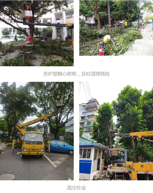 考慮到溫州市是多臺(tái)風(fēng)地區(qū),首先要將消除安全隱患作為本次修剪活動(dòng)的重點(diǎn)。施工隊(duì)對(duì)存在安全隱患的喬木進(jìn)行搶修,通過(guò)多作業(yè)面平行推進(jìn),在保證安全作業(yè)、修剪質(zhì)量與居民出行便利的前提下,比原計(jì)劃提前11天完成任務(wù)。展現(xiàn)在居民面前的,是安全、生態(tài)、清爽、干凈、整潔的宜居環(huán)境。
