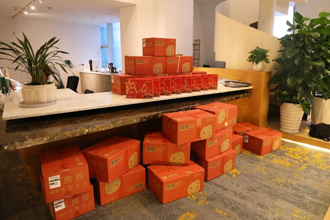 往年的端午,我們都會收到粽子、雞蛋和紅包,今年我們收到的禮品特別豐富,有東北大米、牦牛奶、牛肉干、牛肉醬以及香菇、木耳、黃花等。