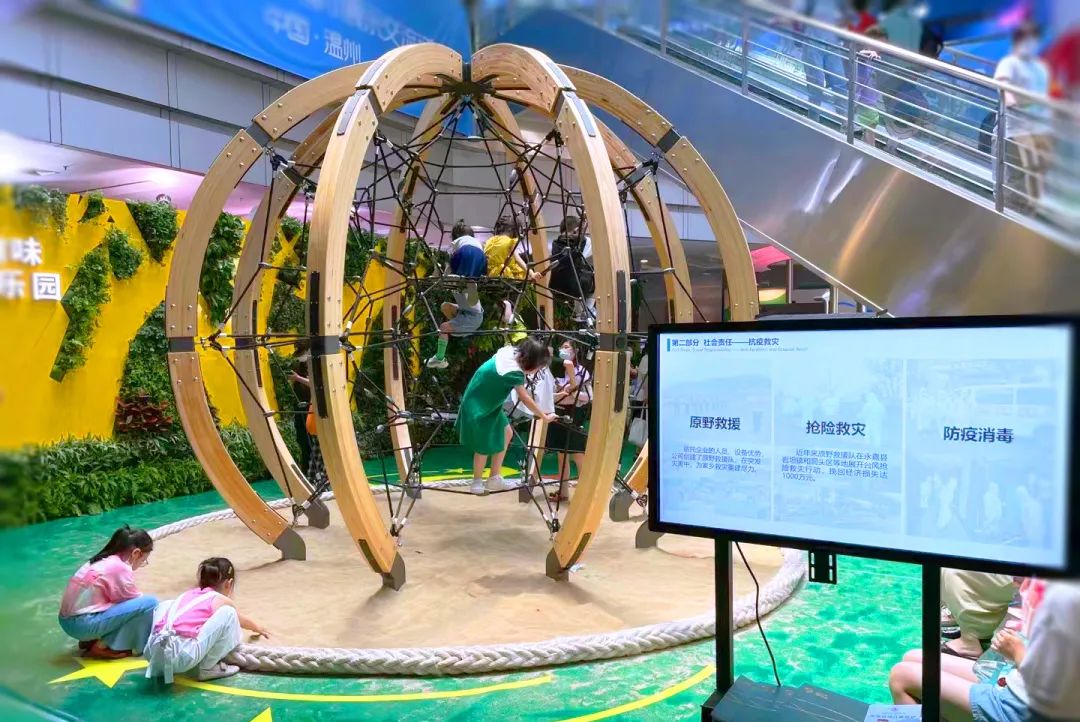 浙江原野建設(shè)有限公司以“童你一起,共建友好城市”為主題,以三垟濕地和白鹿州公園等項(xiàng)目為靈感依托,在現(xiàn)場(chǎng)營(yíng)造出自然氛圍濃郁、充滿(mǎn)童趣的趣味游樂(lè)園。