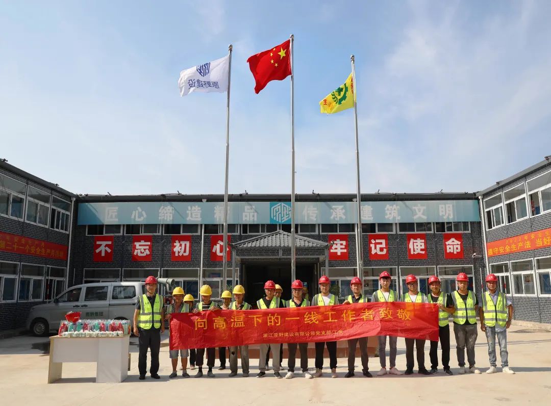 中共黨員、總經(jīng)理滕中在雙嶼項(xiàng)目現(xiàn)場(chǎng),向奮斗在工地一線的工作者表示問(wèn)候與敬意,并親手分發(fā)慰問(wèn)品,召開專題會(huì)議,督查現(xiàn)時(shí)高溫情況下的安全工作落實(shí)情況。