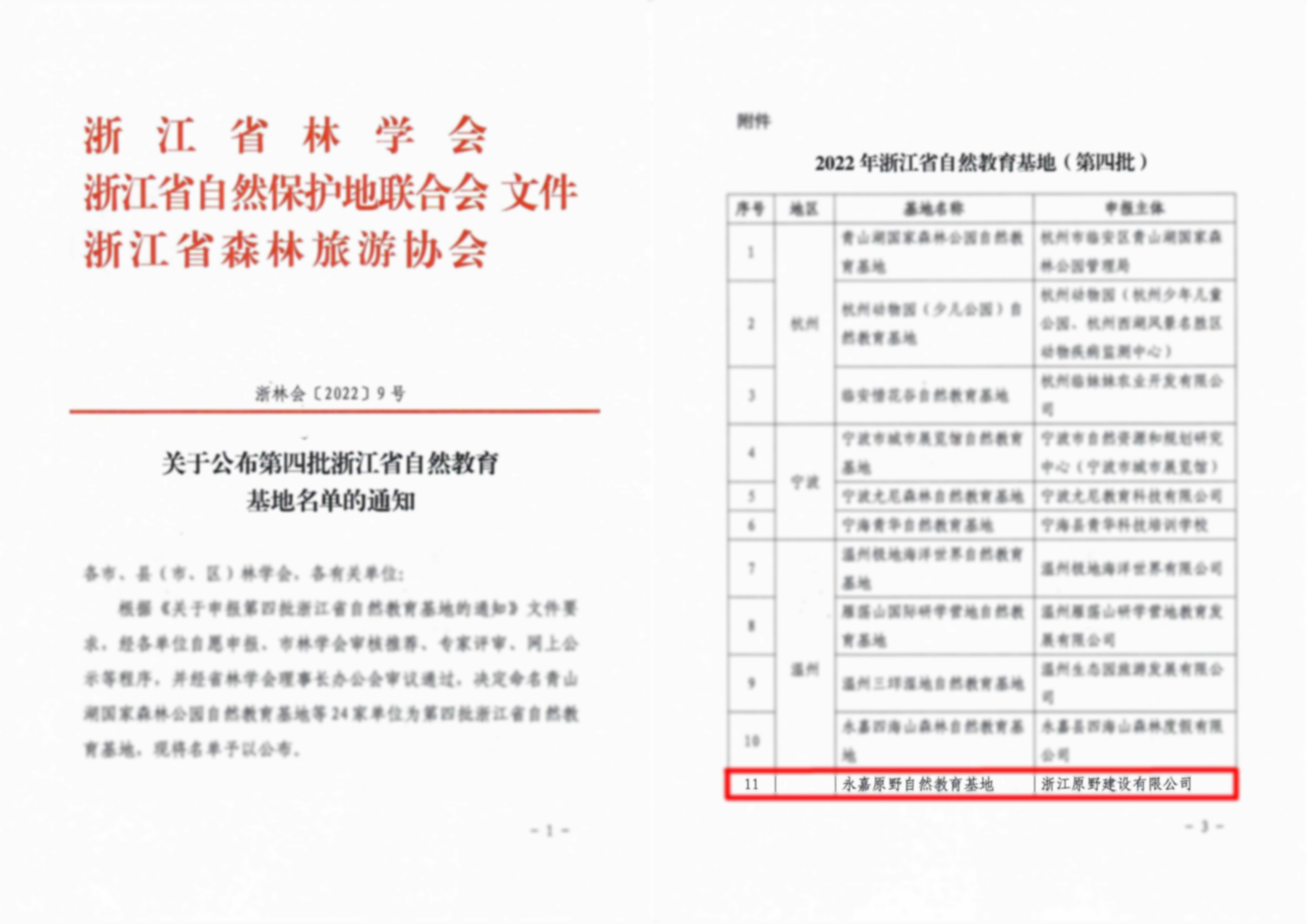 原野集團(tuán)自然教育基地入選第四批浙江省自然教育基地名單。