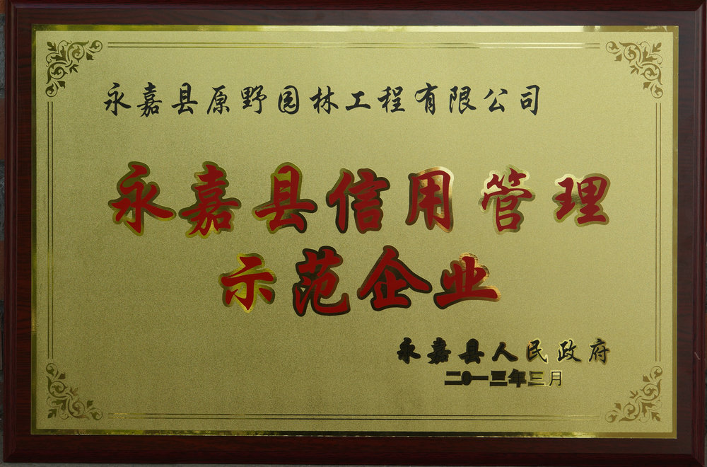 原野園林,連續(xù)三年榮獲“縣信用AAA企業(yè)”