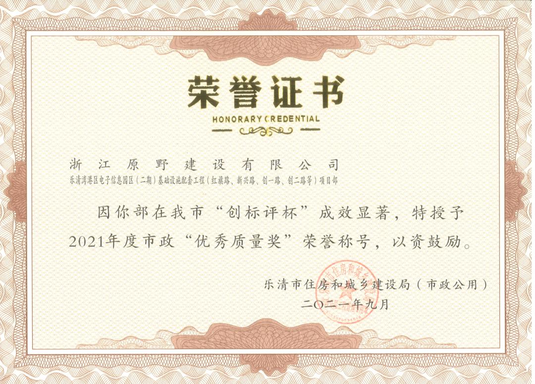 2023-10-1610月16日,根據(jù)溫市政業(yè)[2023]1號(hào)文件《溫州市市政行業(yè)“一先一優(yōu)”申報(bào)的通知》和溫市政業(yè)[2012]14號(hào)文件《溫州市市政行業(yè)先進(jìn)單位評(píng)選辦法》、溫市政業(yè)[2012]18號(hào)文件《溫州市市政工程優(yōu)秀項(xiàng)目經(jīng)理評(píng)選辦法》的規(guī)定,經(jīng)各單位申報(bào)、各區(qū)縣住建局或市政園林局推薦,市市政行業(yè)協(xié)會(huì)秘書(shū)處組織對(duì)申報(bào)材料初審、評(píng)審小組綜合評(píng)議、無(wú)記名投票和公示等程序,“浙江原野建設(shè)有限公司”被評(píng)為“2022年度溫州市市政行業(yè)先進(jìn)單位”。擔(dān)任樂(lè)清灣港區(qū)電子信息園區(qū)(二期)基礎(chǔ)設(shè)施配套工程項(xiàng)目經(jīng)理的楊衛(wèi)明,被評(píng)為“2022年度溫州市市政工程優(yōu)秀項(xiàng)目經(jīng)理”。