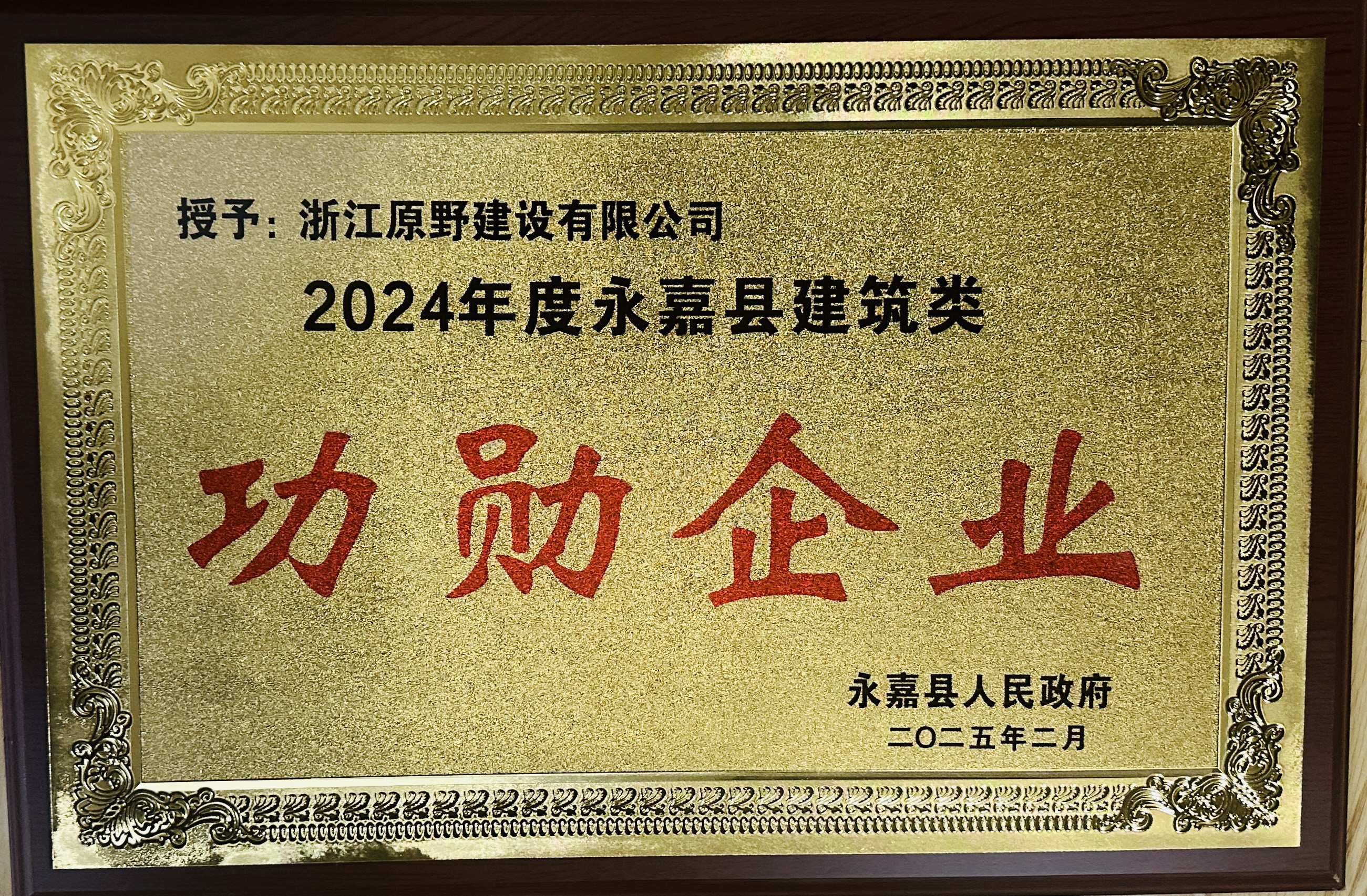 原野建設(shè)有限公司獲永嘉縣2024年度功勛企業(yè),李星濤獲永嘉縣2024年度功勛企業(yè)家。