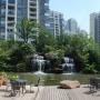 空間變化豐富,植物色彩、層次、季相變化分明,土坡造型尺度感官舒適。水景的平面布置和跌瀑靈動多變,植物和景石結合自然,瀑布生動壯觀。 硬景做工細致,鋪裝平整,色彩搭配合理,細節(jié)部分處理到位。草坪線弧度優(yōu)美流暢,灌木飽滿,中層植物品種、高低、疏密、色彩變化豐富,高層喬木天際線變化優(yōu)美,感觀良好。