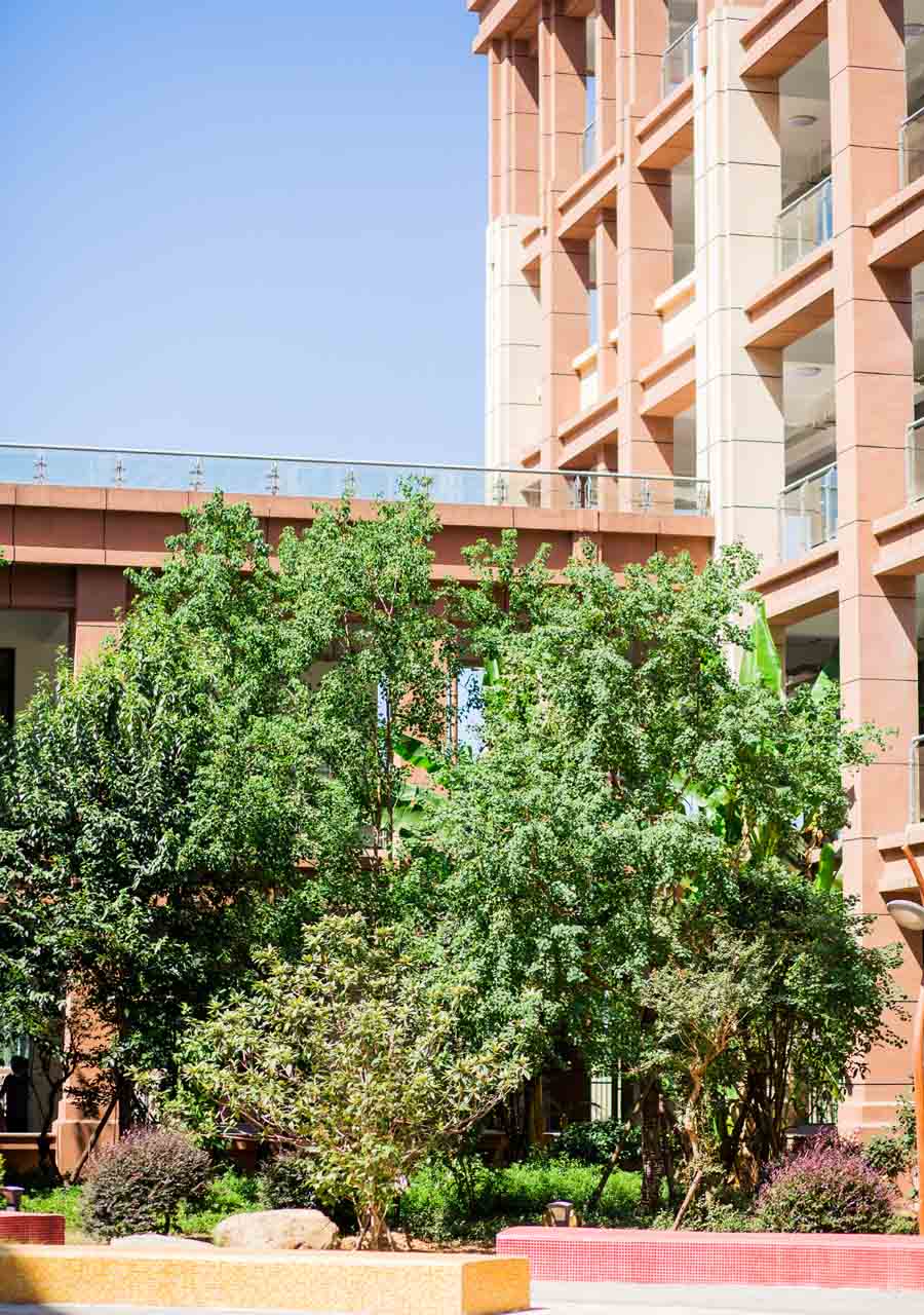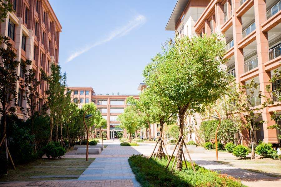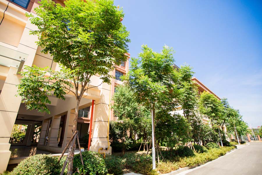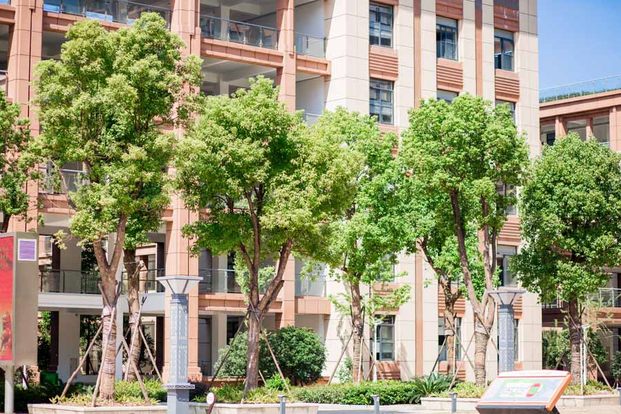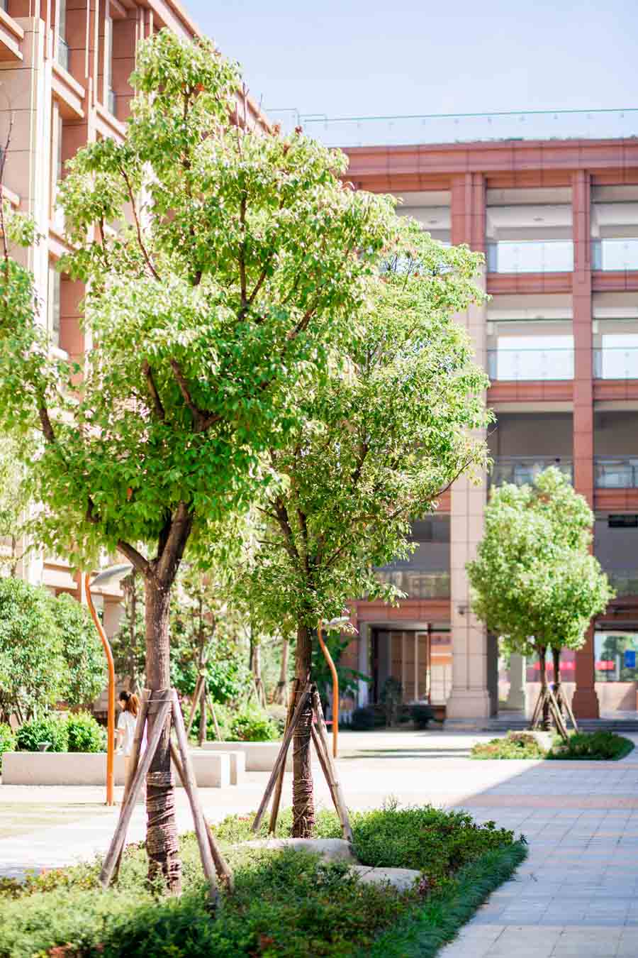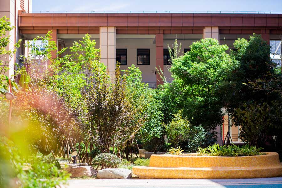 甌海區(qū)外國語學校一期、二期室外附屬及運動場工程,本工程入口兩側景墻, 是本工程的一大亮點,采用花崗巖干掛雕刻,景墻上由潘海波校長書中題字,內容為“每一個人都有自己發(fā)展的優(yōu)勢”,告知每個學子們,每個人都是獨一無二的,每個人都有自己發(fā)展的優(yōu)勢,學校的初衷,也是希望每個學子們都能成為祖國的棟梁。 學校共分為四大園,每個園都有自己的特點,樵園的廊架、膠粘石(樹枝圖),讀園有馬賽克弧形坐凳,耕園整石座凳,漁園的船型座椅、膠粘石(海鷗圖),都各有特色,展示了園林景觀的自然美。 運動場標準的400m跑道,設有籃球架、排球架、足球門、四格肋木、雙杠單杠等,是學生早操和體育課的場所,也是甌海區(qū)中小學體育比賽的最佳場地。 植物突出園林景觀特色,以本地樹種為主,適當引入園林觀賞性樹種,落葉樹種和常綠樹種自然搭配,高低錯落,灌木與地被的完美配置,充分展現了自然景觀。