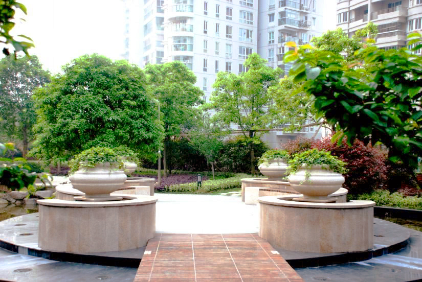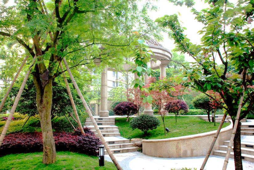 該工程包括游泳池、亭子、景墻、園路、鋪裝、綠化等。