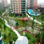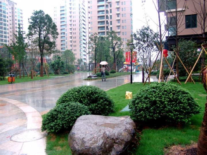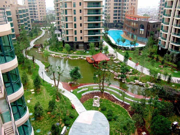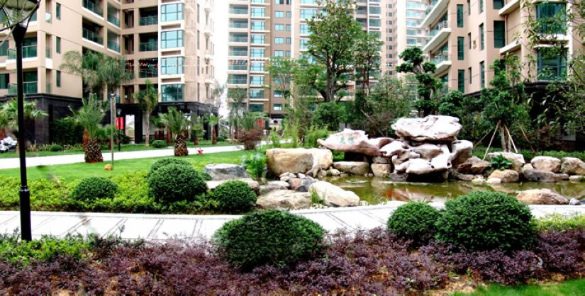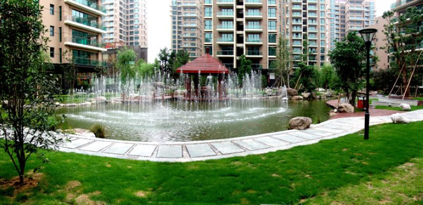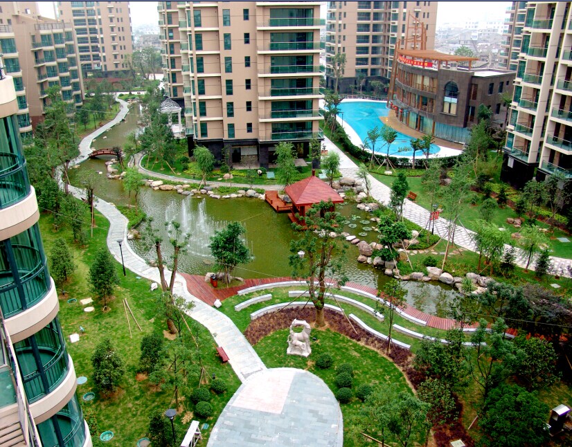 工程景觀綠化總面積約25000平方米(包括室外給排水、室外電氣、噴泉、亭廊、木棧道、小橋、跌水、假山、景觀小品、道路、廣場(chǎng)景觀、綠化等),造價(jià)約2400萬(wàn)元。