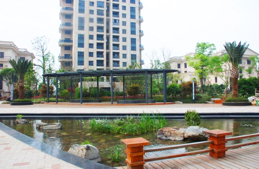 該工程位于浙江省溫州市江濱路,與甌江隔江相望。中瑞曼哈頓景觀綠化總面積約40000平方米,工程主要內(nèi)容包括游泳池、植物水池、跌水景墻、木平臺、兒童游樂場、廊架、弧形景墻、浮雕景墻、景石及喬灌等綠化植物)??傇靸r(jià)約3000萬元。